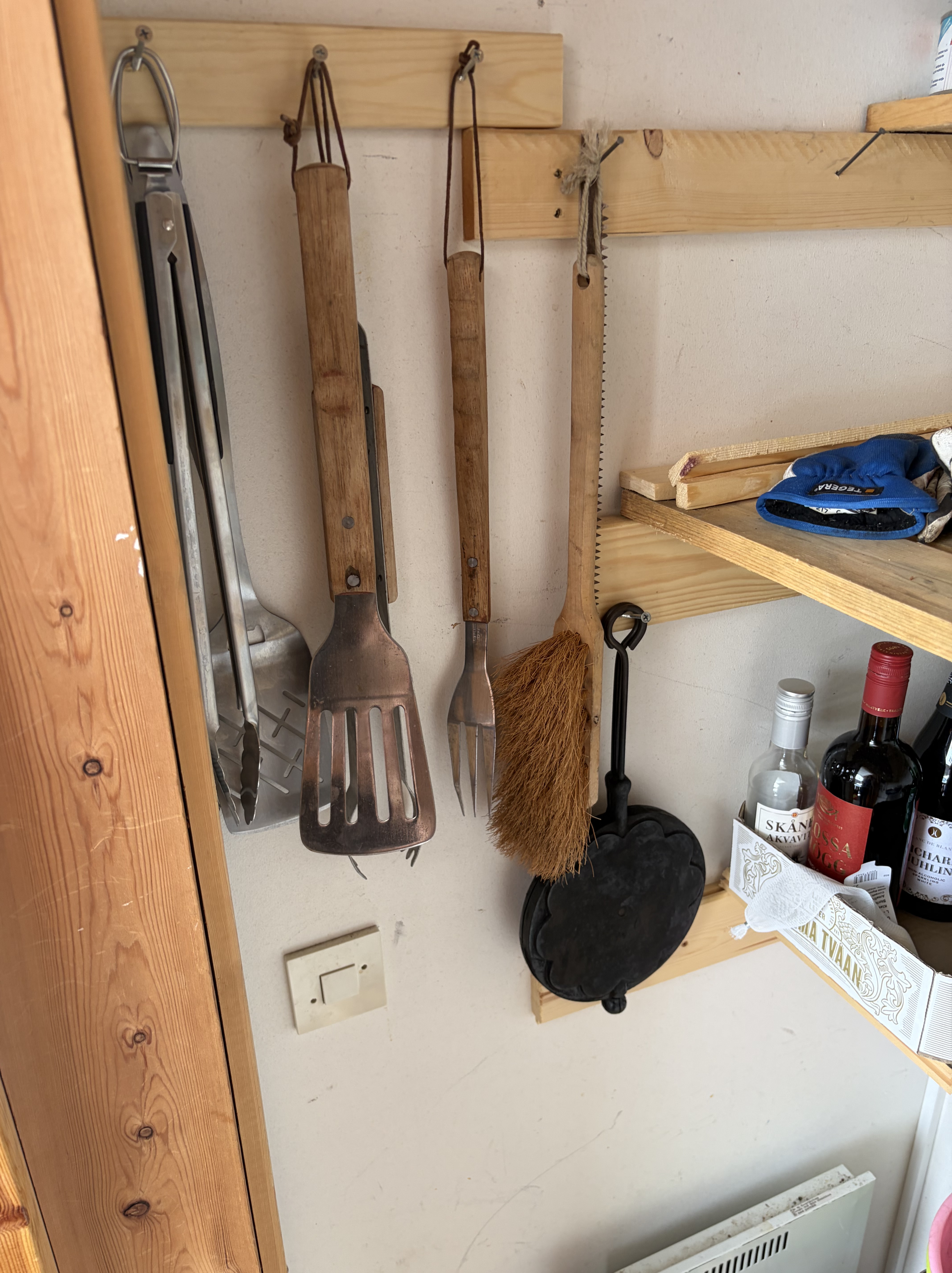 Redskap att laga med finns innanför dörren till höger om entredörren.